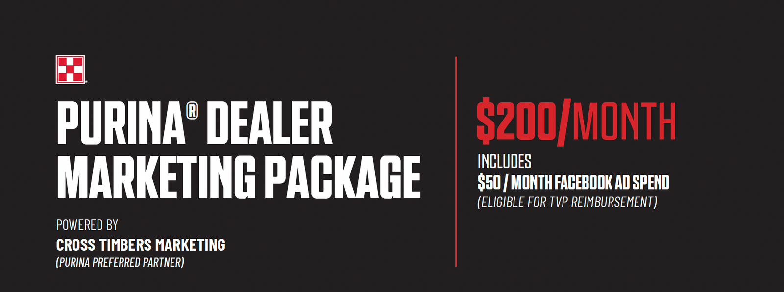From the partner that brought you My Local Purina Dealer, we’re expanding our dealer marketing package to give you more, so you can do more! With the conclusion of MLPD, we’re now focused on increasing the TOTAL VALUE PACKAGE you receive by providing additional marketing services focused on helping you, the local Purina feed dealer, grow your reach, reputation, and business. So, as you plan your year with your staff and Purina sales team, know that we are here to work directly with you. With this new package we will continue to provide you with the high-quality targeted marketing you need and the professional service you deserve. Sign up is simple, let’s get started today!